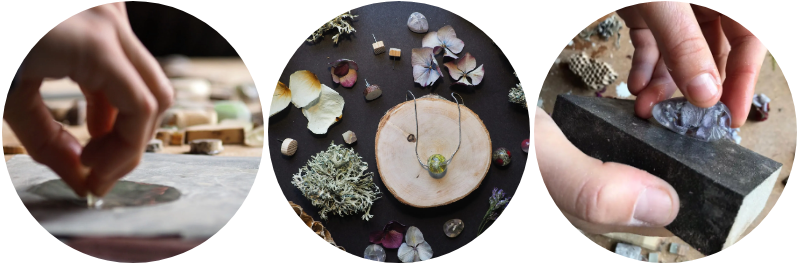 Tvoříme rukama a srdcem, to je základ. Zjistili jsme, že ruce to ten nejužitečnější nástroj. Ke tvorbě šperků nám stačí zapnout fantazii, porozhlédnout se v lese po kousku dřeva nebo sebrat květiny na louce a pak hurá do tvoření. Ruční pilka, hoblík po dědovi, nůž, vrtačka a hromada brusného papíru. A taky dobrá nálada, dobrý nápad pak přijde sám.