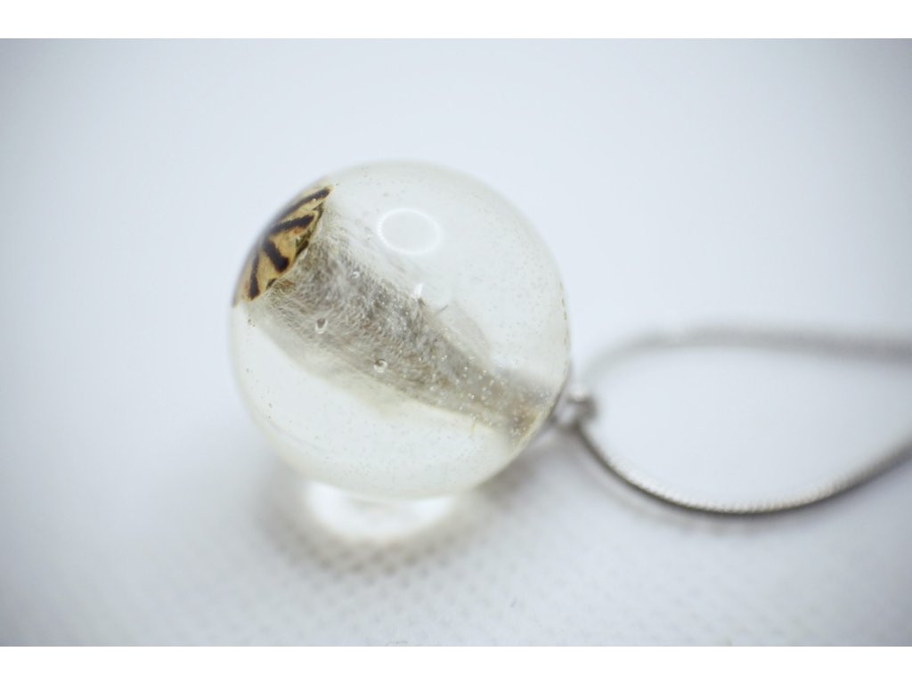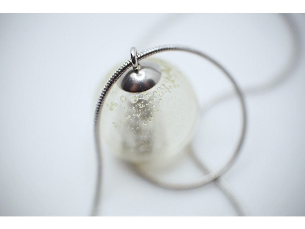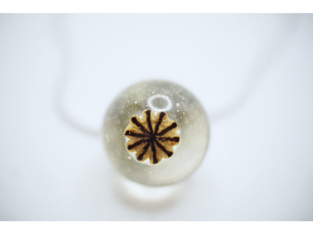 Náhrdelník s makovičkou zalitou v pryskyřici jako kulatý přívěsek.